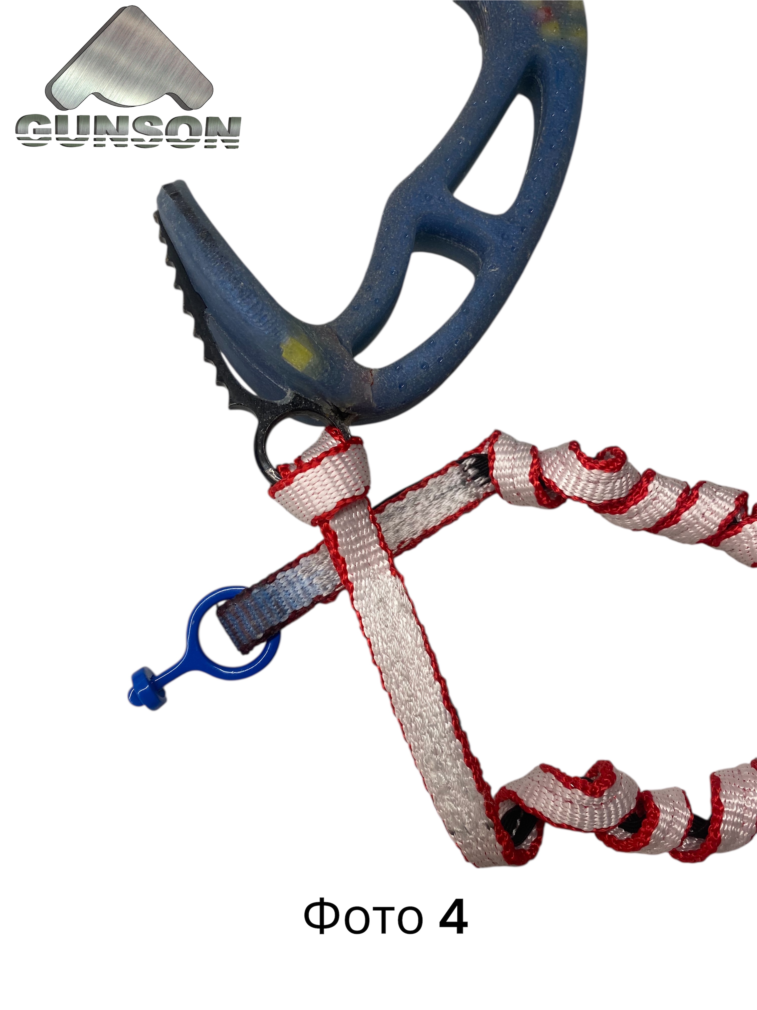 На конце самостраховки петля для крепления инструмента полу схватывающим узлом. Есть несколько вариантов крепления самостраховки к инструменту, не разбирая вертлюг Фото 1, Фото 2 , и вариант с разбором вертлюга , как показано  на фото 3. Нижнее кольцо при этом остается свободным, его можно использовать для короткой самостраховки. Еще вариант фото 4. , но самостраховка  может повредится при контакте с рельефом. Общий вес вертлюга с самостраховками  W-110g.